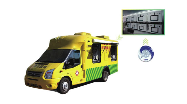 新冠病毒核酸检测移动实验室是全国首款由轻型客车底盘改装的集采样和检测于一体的移动实验室。该系统搭载qmh球盟会自主研发的“样本进-结果出”的全集成芯片检测系统,先将样品加入芯片后,再将芯片插入仪器即可,仪器和芯片配合完成核酸提取、扩增反应和结果检测等功能,无需人工干预,45分钟完成全部实验,最快35分钟报告新冠阳性结果。比常规PCR速度快3倍以上,检测灵敏度可达150拷贝/毫升。同时,车内负压环境和配置的生物安全柜可以在保障生物安全的基础上,在一个实验分区内完成加样及检测的全流程,实现新冠病毒的快速筛查与诊断。